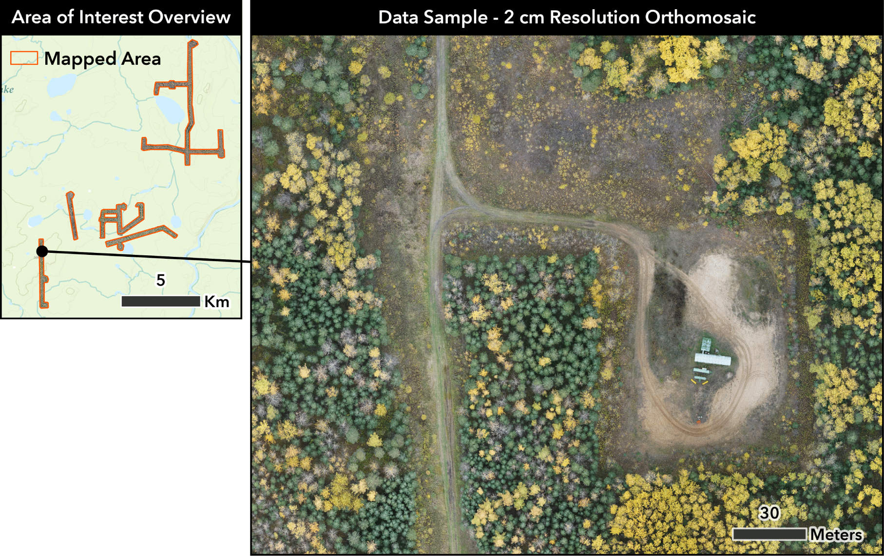 • Geotagged images using a PPK workflow for improved positional accuracy; this process utilized GNSS base stations recording raw static data, which were then processed through PPP to get an accurate ground point to PPK the drone data.